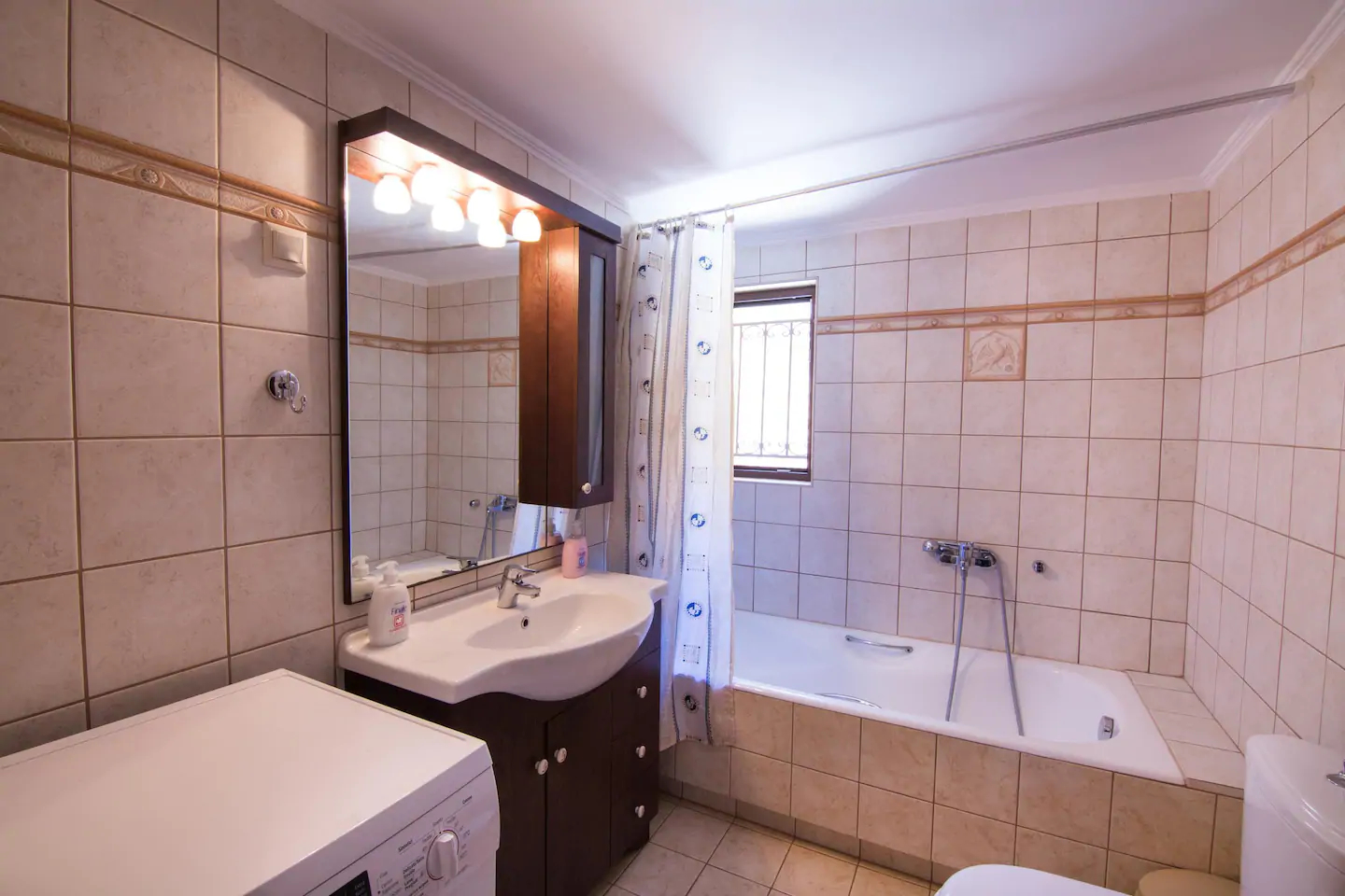 At the outer space of the house, there is a private parking, sunbeds and 2 wooden bench. Also, there is a garden area next to the house with many kinds of fruit trees!