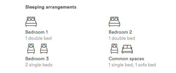 It also features a flat-screen satellite TV in the living room and three smaller in the bedrooms, washing machine and free Wi-Fi.
